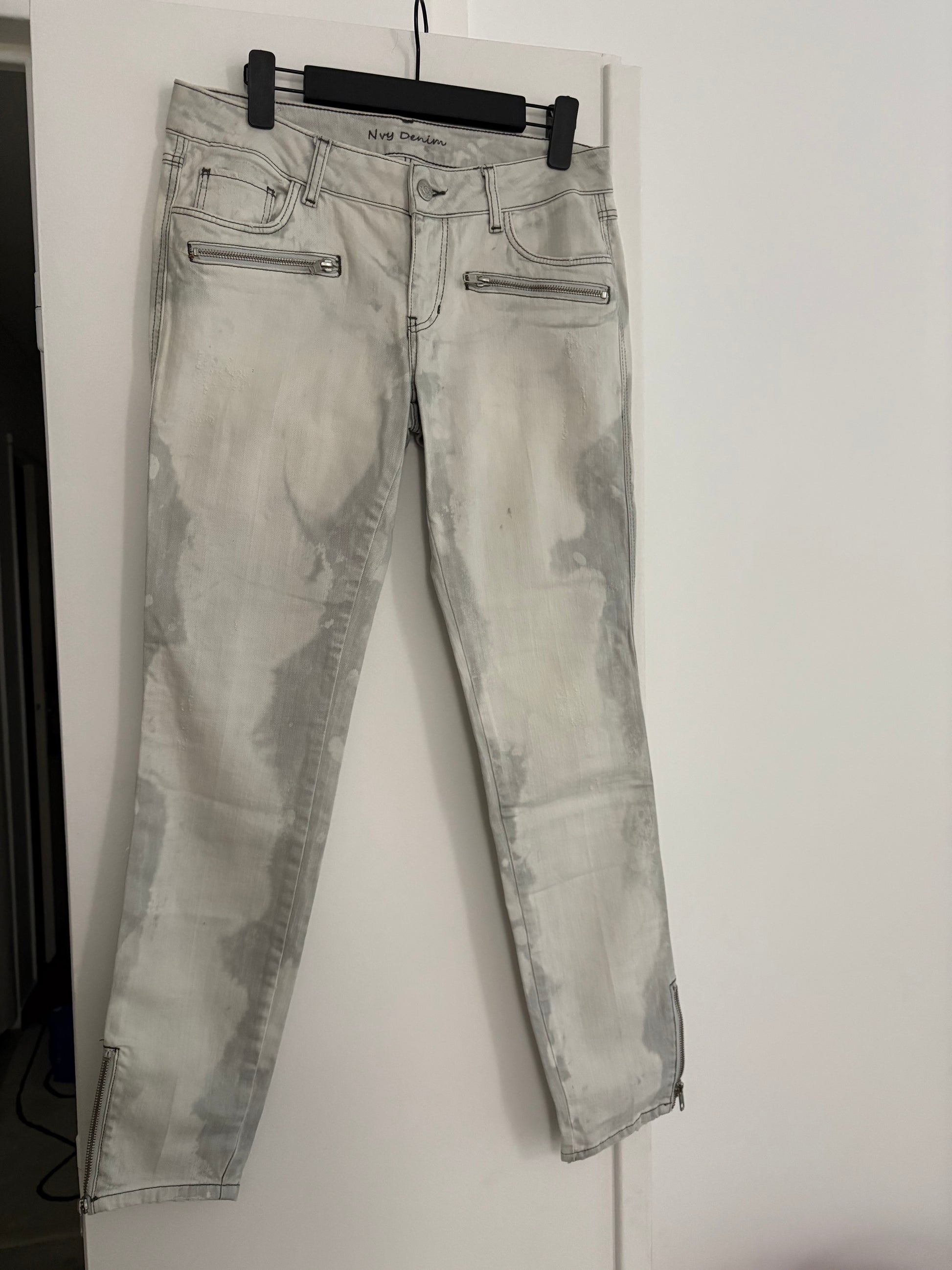 Jeans NVY délavé avec fermetures, idéal pour galber le fessier, les zips donne du style au modèle. je porte prêt du corps, casual.